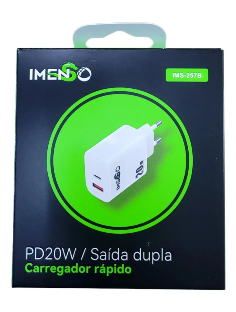 CARREGADOR TURBO SAÍDA DUPLA USB A + USB C IMENSO IMS-257B BRANCO